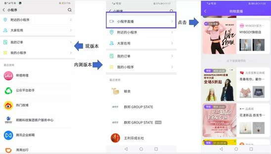 多位正在參與微信新版內測的用戶于當天深夜、次日凌晨時發(fā)現,“小程序直播”被置頂在“小程序”菜單欄的第一位。點擊進入后,是正在直播、或即將直播的信息流。