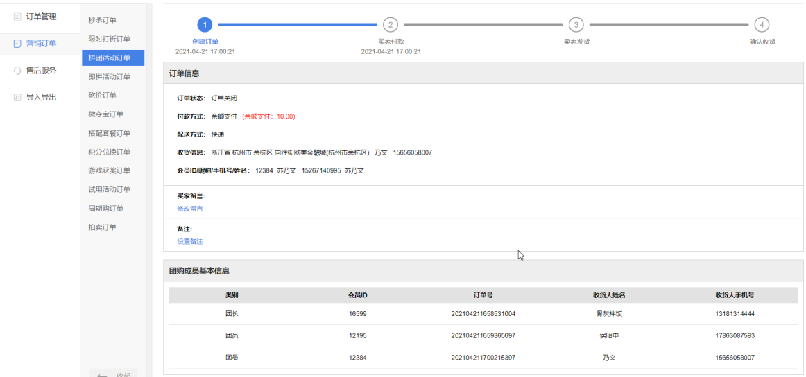 (1)后臺查看抽獎團(tuán)訂單詳情顯示“團(tuán)購成員基本信息”