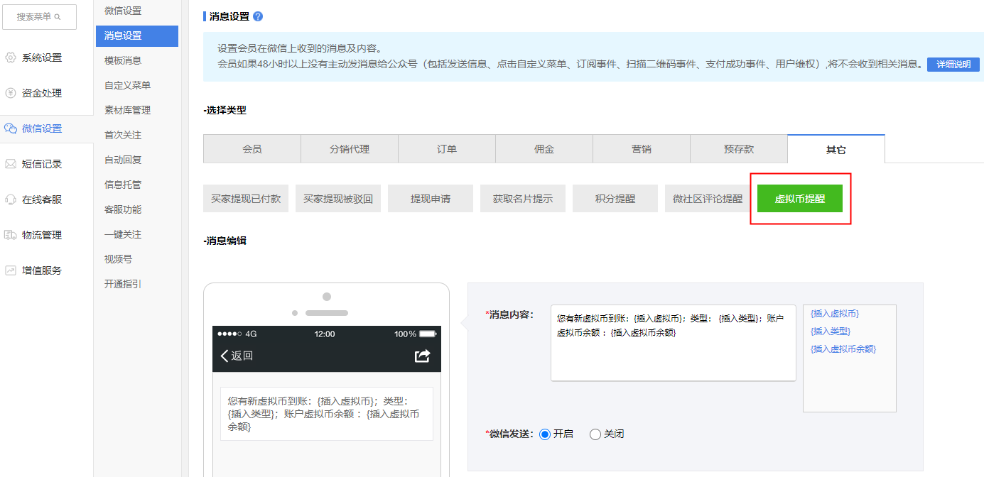 現(xiàn)邏輯:微信設(shè)置-消息設(shè)置-其它,增加虛擬幣提醒