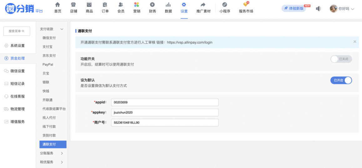9、啟小鋪可以使用通聯(lián)支付【新增】