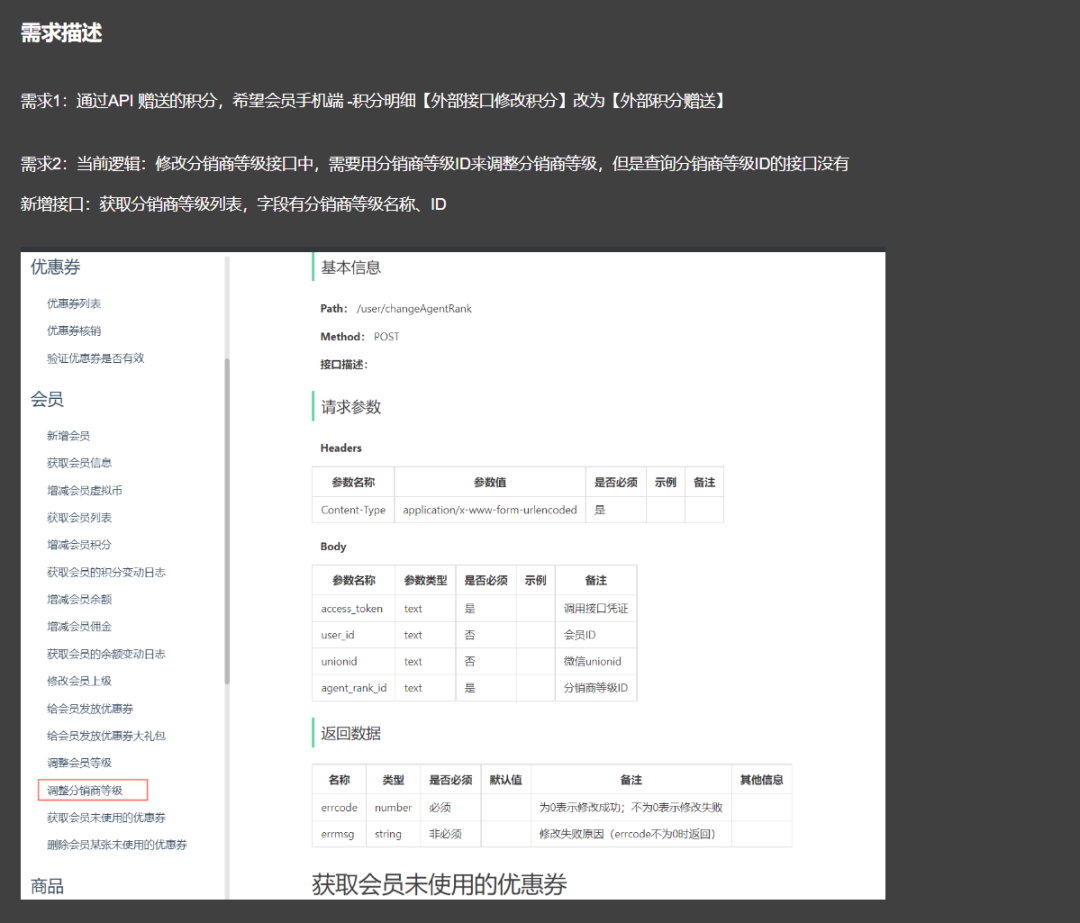 需求2:修改分銷商等級接口中,需要用分銷商等級ID來調整分銷商等級,但無查詢分銷商等級ID的接口
