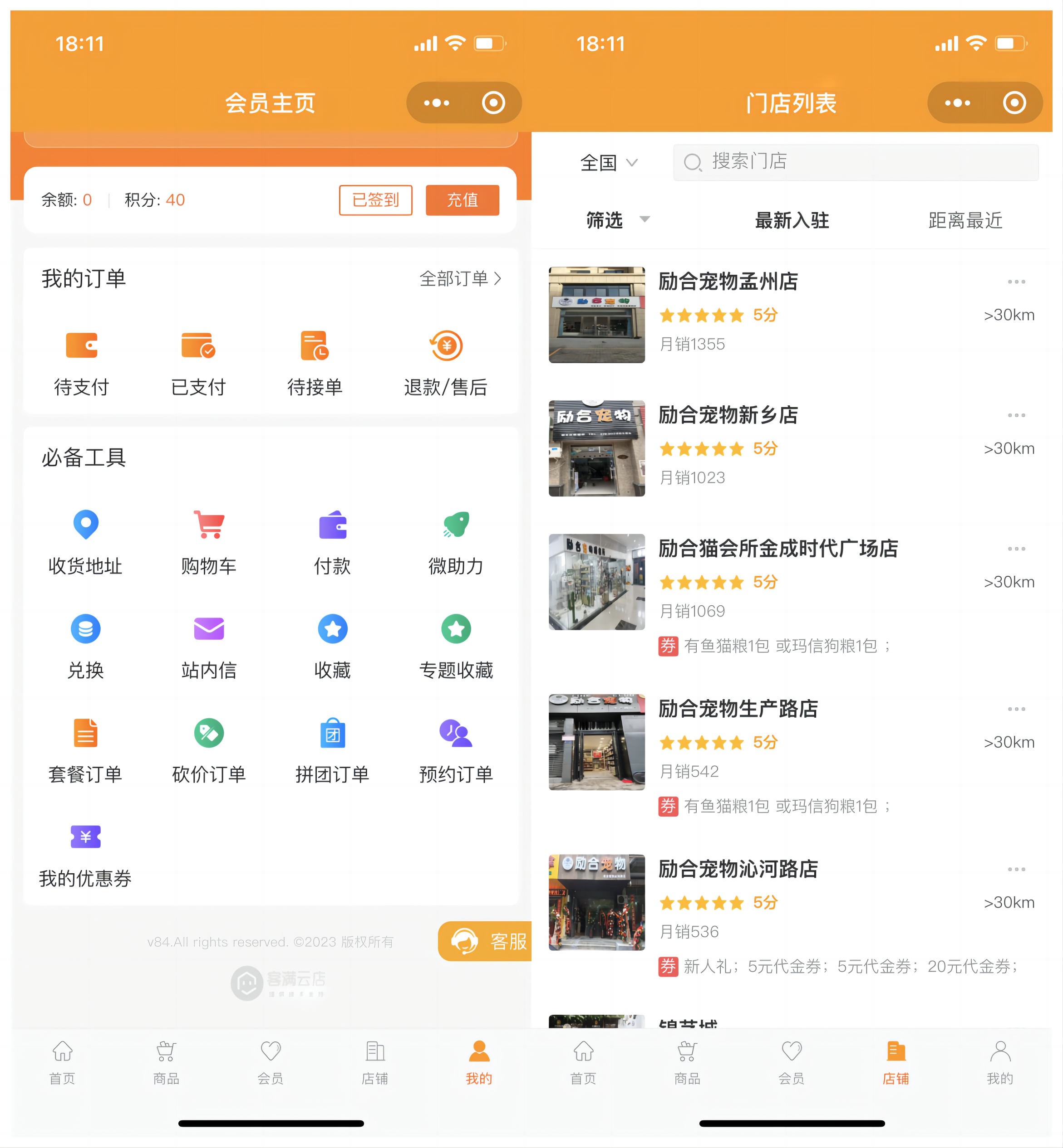 小程序商城內(nèi)所有非服務(wù)類的商品,都支持到店自提或者快遞到家,消費(fèi)者可以自定義選擇距離自己最近的勵(lì)合寵物門店自提。