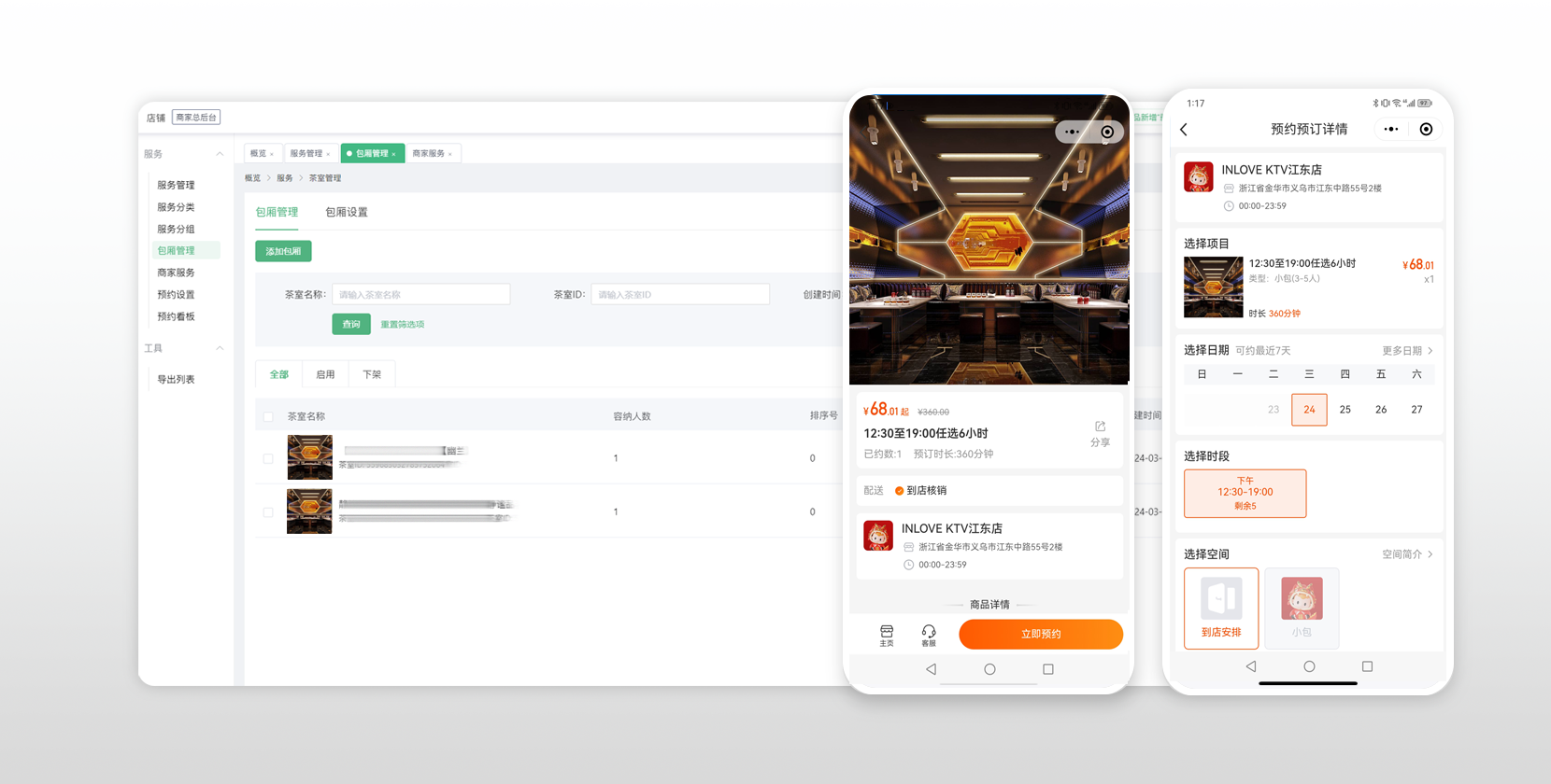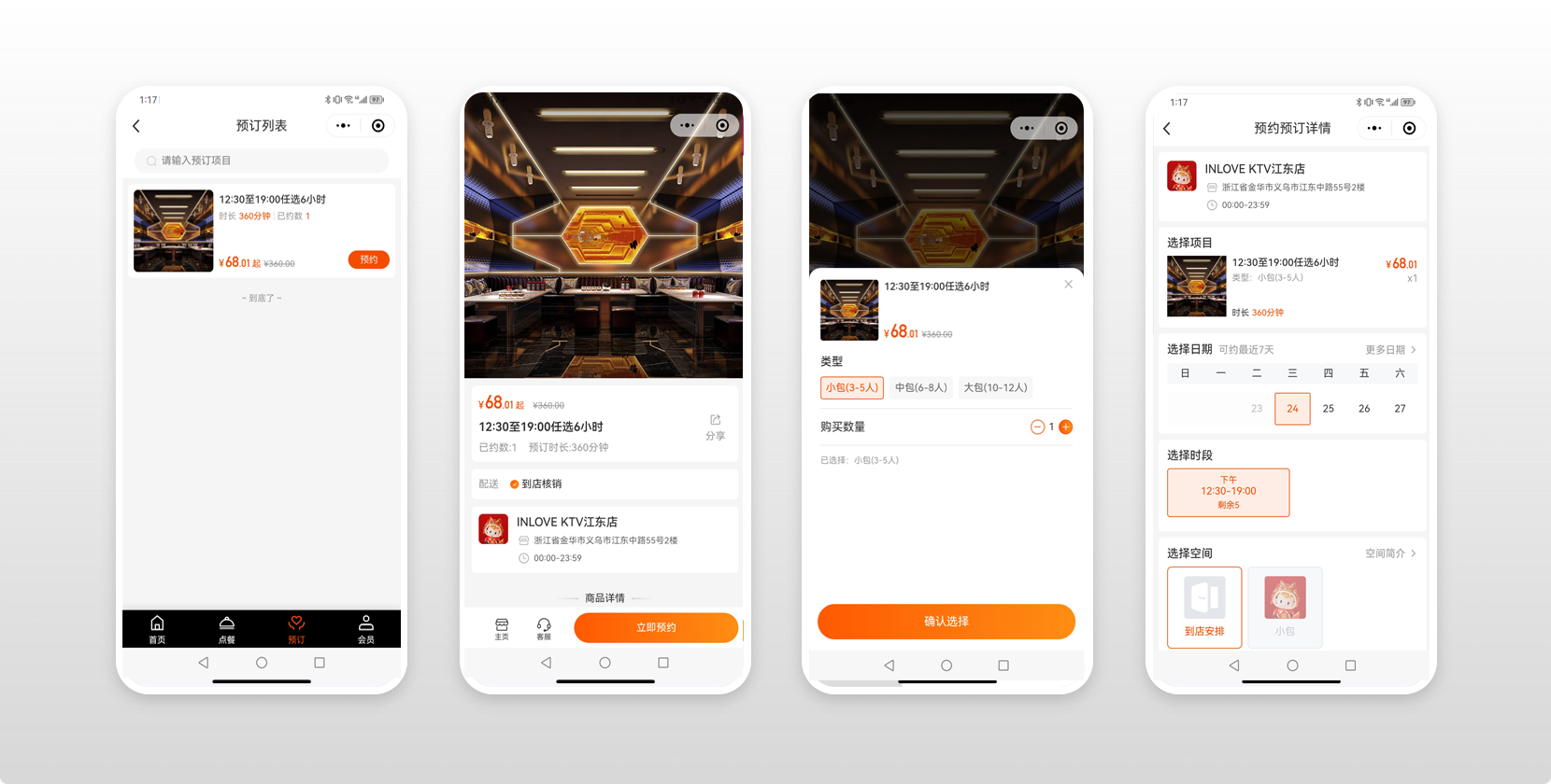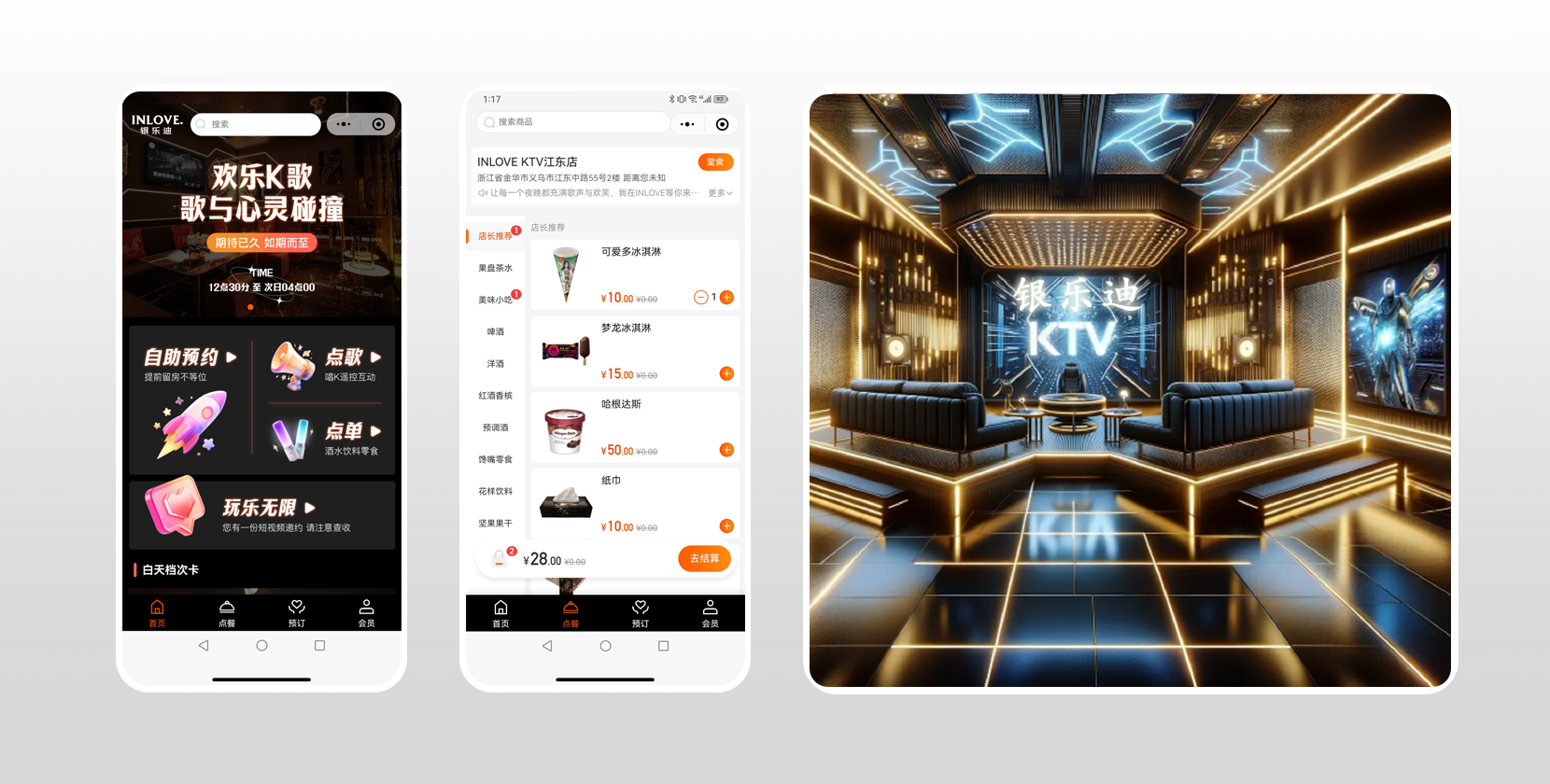 KTV小程序提供包廂預約,在線點單,賓客存酒等功能,極致服務,提升消費者唱K體驗。